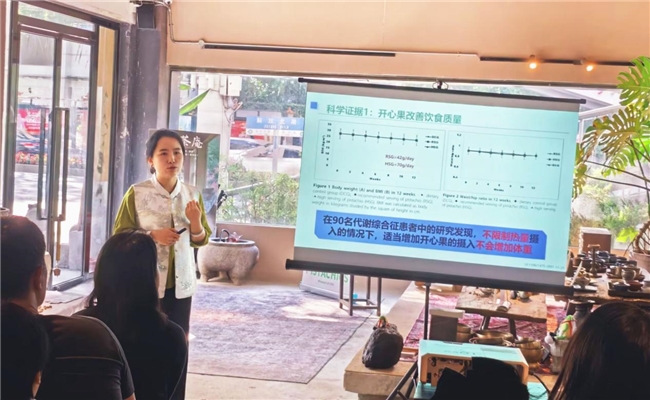 来自广东药科大学公共卫生学院副研究员兰秋野在分享会上指出,美国开心果在科学控重方面具有积极作用。它富含膳食纤维,有助增强饱腹感,从而控制总热量摄入;优质的完全蛋白不仅益于身体组织的构建与状态恢复,也能延长饱腹时间;单不饱和与多不饱和脂肪则能提供持久能量并支持代谢健康。这三大营养素协同作用,使美国开心果成为理想的体重管理零食。